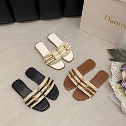 Nouvelles sandales plates d'été 2026 pour femmes, à bout carré, semelle souple, tongs à bride unique avec boucle métallique